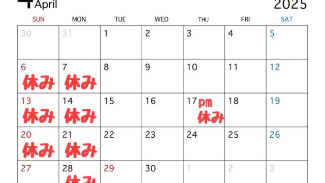 notice 🌸令和 7年 4月の店休日のお知らせです🌸