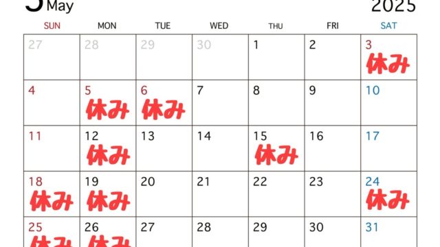 notice 🎏令和 7年 5月の店休日のお知らせです🎏