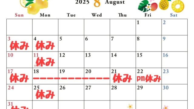 notice 🌊令和7年 8月の店休日のお知らせ🌊